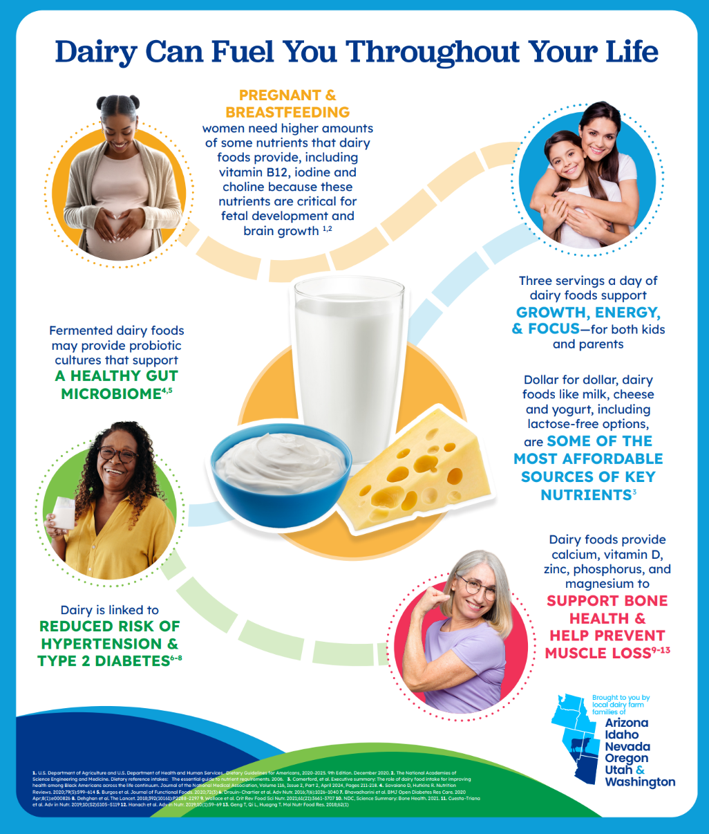 Explore how dairy can fuel your life whether you are pregnant, breastfeeding, growing up, in your adult years, or aging vibrantly. This is an ideal handout or poster for WIC, family physicians, and OB-GYN offices.